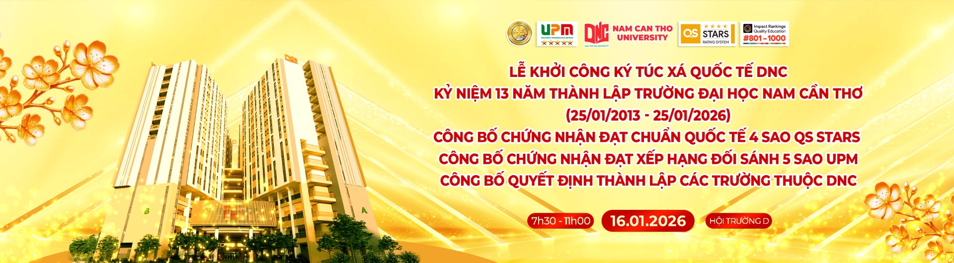 Within the framework of the program, the University will also celebrate the 13th Anniversary of its establishment and announce several important milestones, affirming the quality of education, institutional standing, and sustainable development orientation of Nam Can Tho University in the new phase.