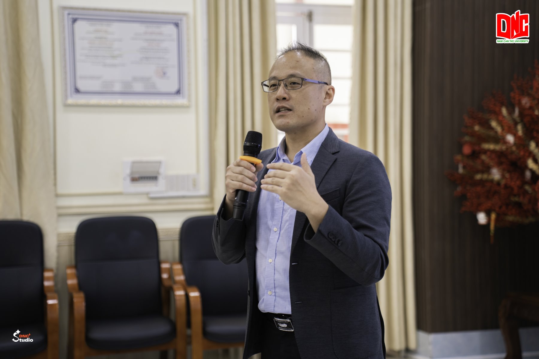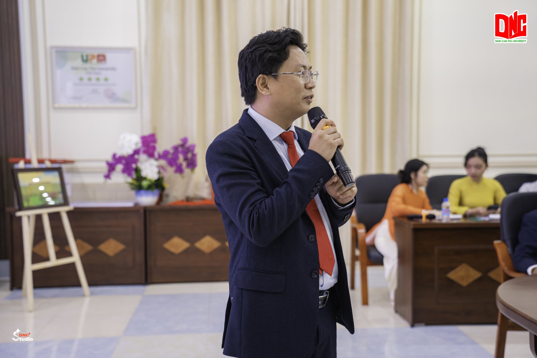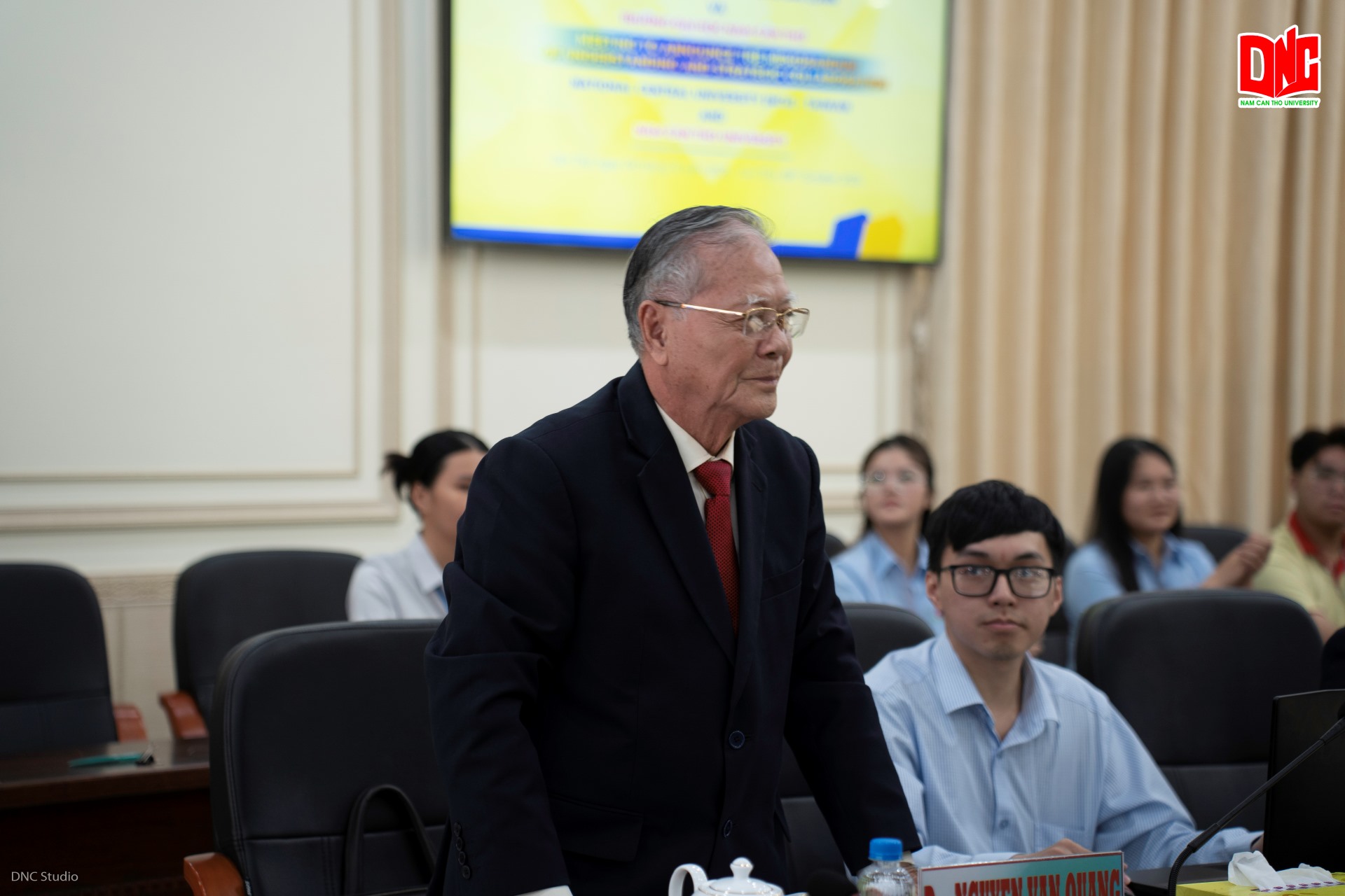 TS. Nguyễn Văn Quang - Bí thư Đảng Ủy, Hiệu Trưởng Trường Đại học Nam Cần Thơ phát biểu tại buổi làm việc (Ảnh: DNC Studio)