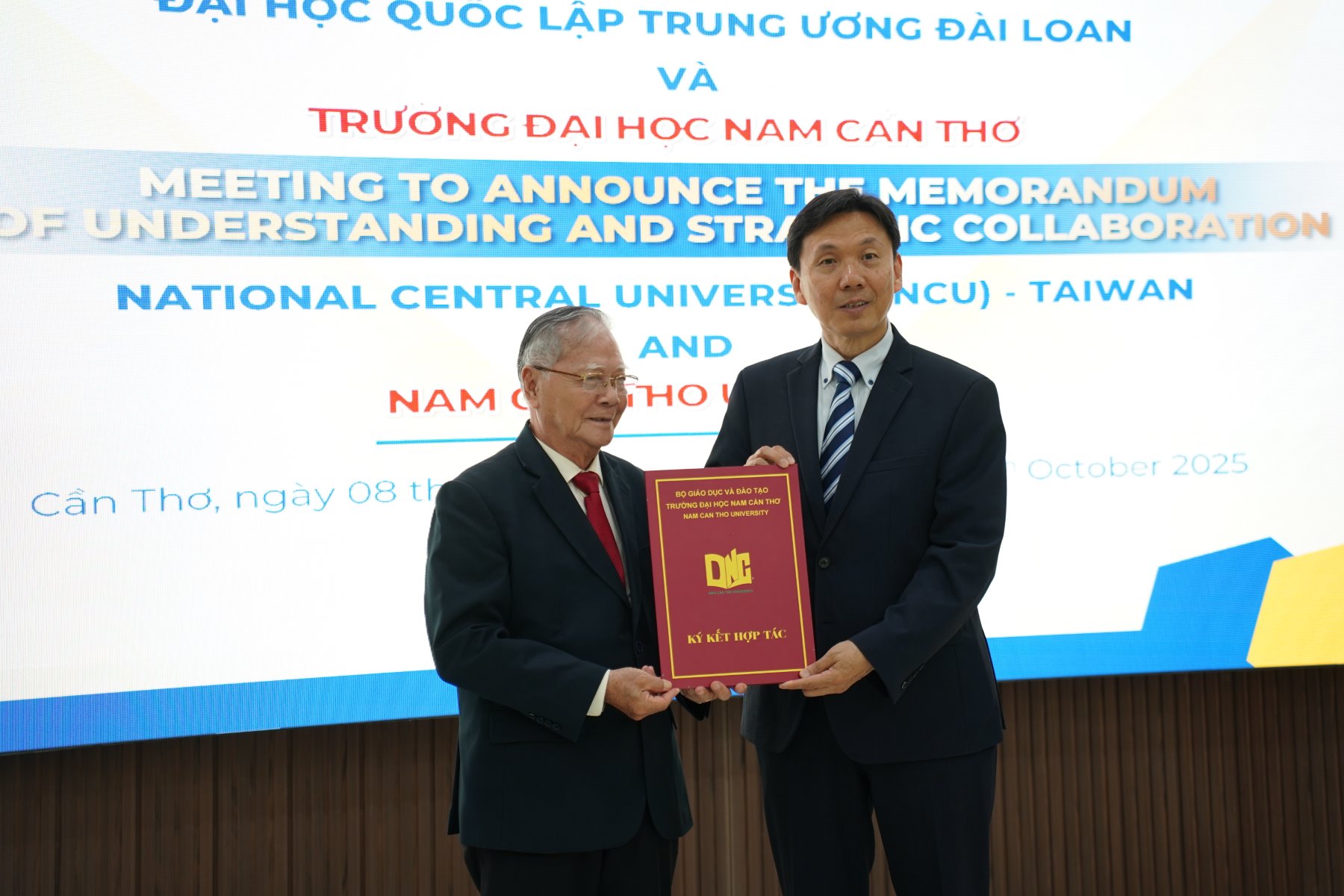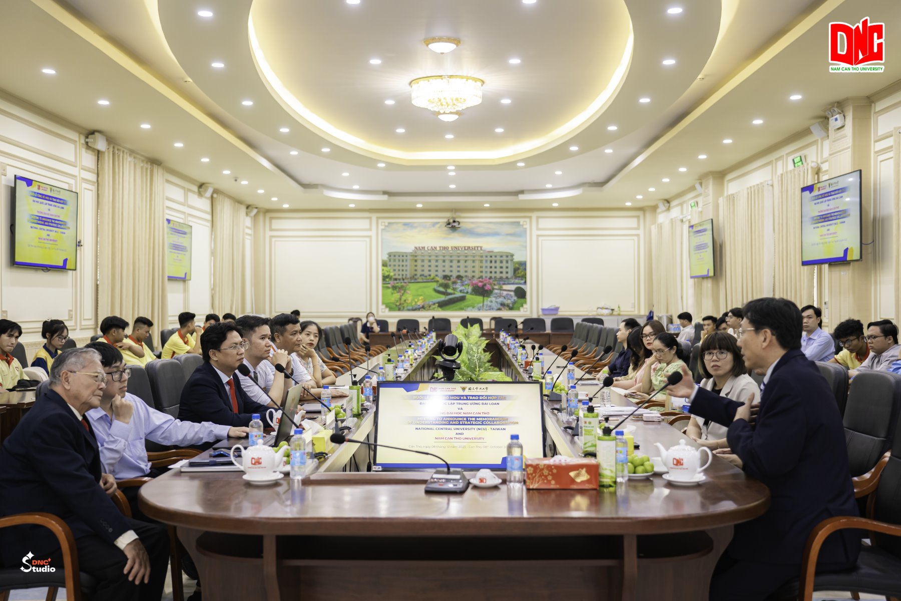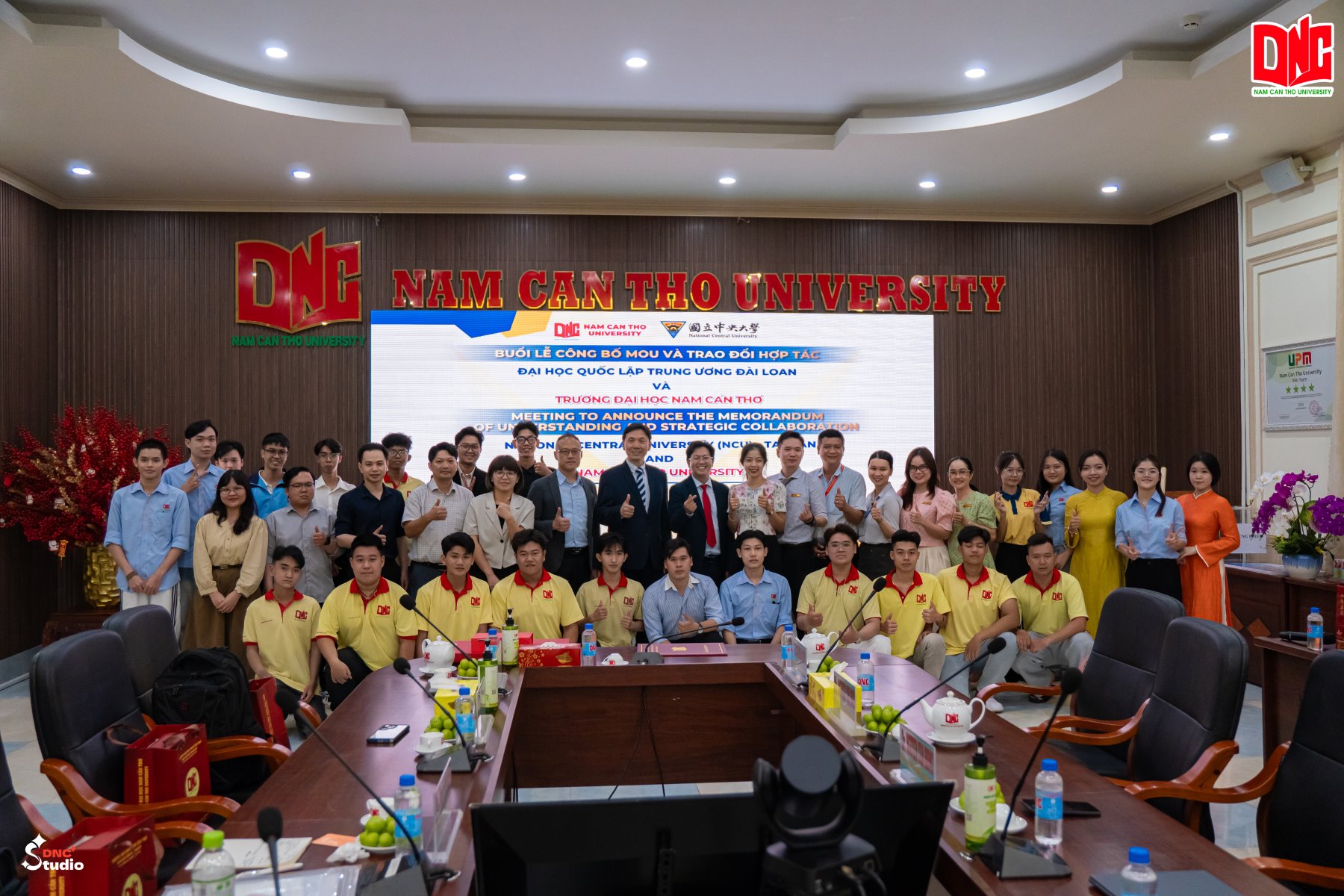 Toàn cảnh buổi công bố Biên bản ghi nhớ hợp tác giữa Trường Đại học Nam Cần Thơ và Đại học Quốc lập Trung ương Đài Loan (Ảnh: DNC Studio)