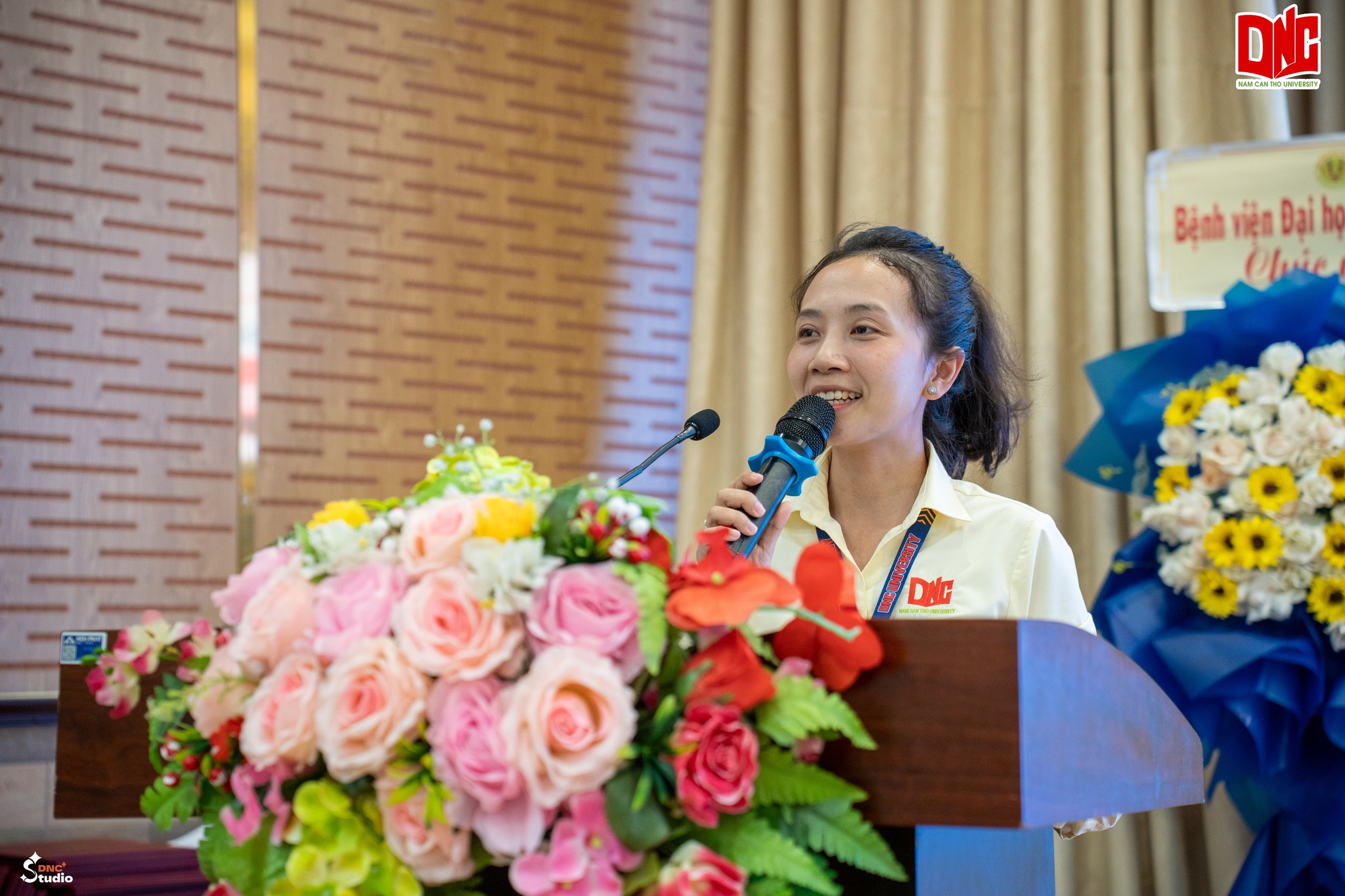 Đồng chí Tô Thị Ngọc Trầm - Phó Chủ tịch Công đoàn cơ sở Trường Đại học Nam Cần Thơ phát biểu tại buổi họp mặt
