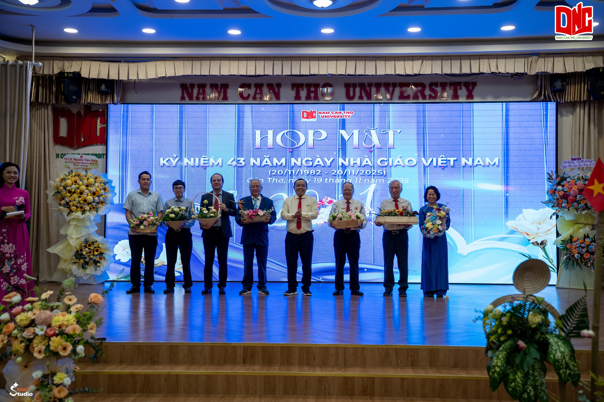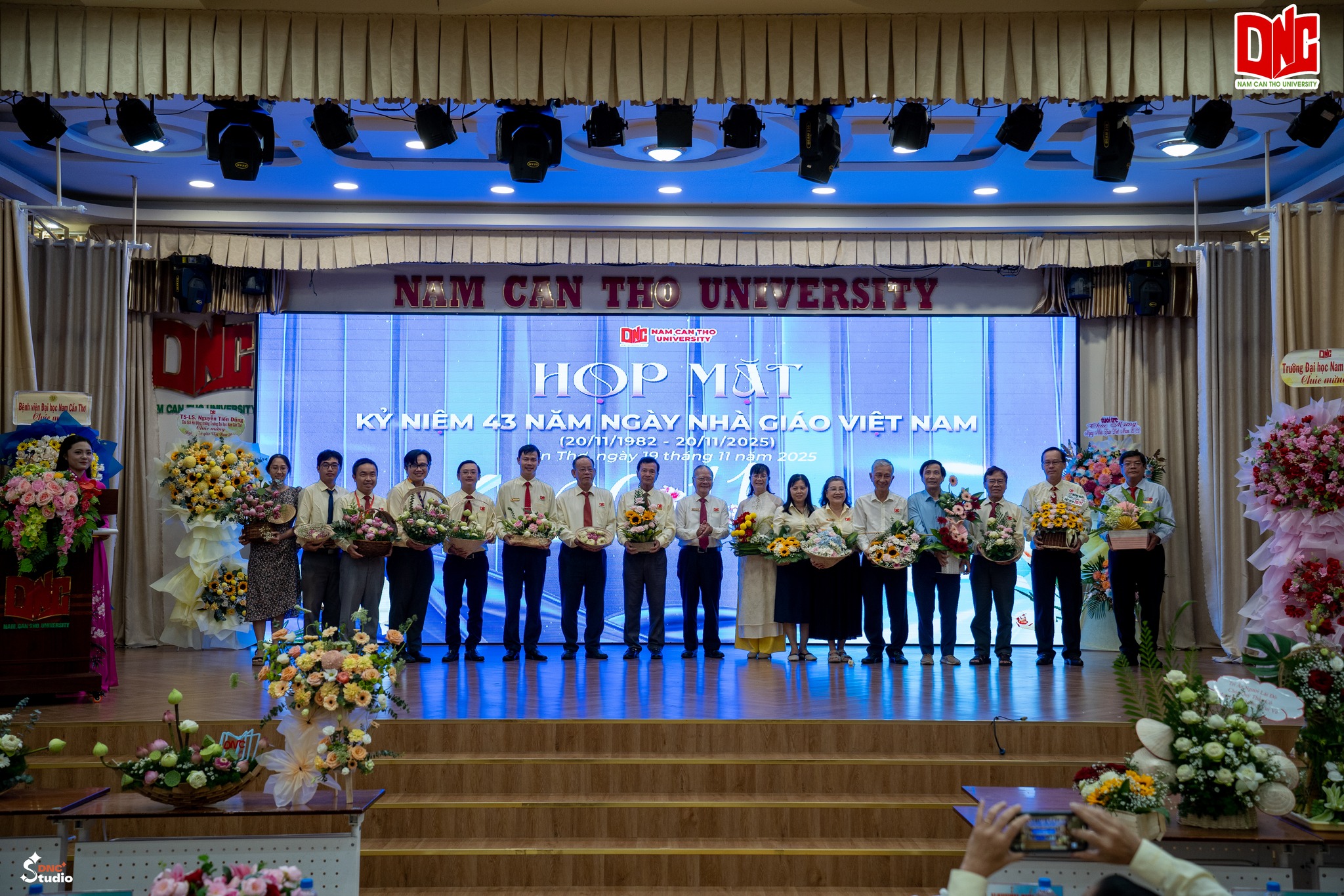 Buổi họp mặt mở đầu bằng những lời chúc tốt đẹp, những bó hoa tươi thắm cùng sự tri ân sâu sắc gửi đến đội ngũ giảng viên, những người đã bền bỉ “lái đò”, truyền lửa tri thức và giá trị nhân văn cho bao thế hệ sinh viên Nam Cần Thơ.